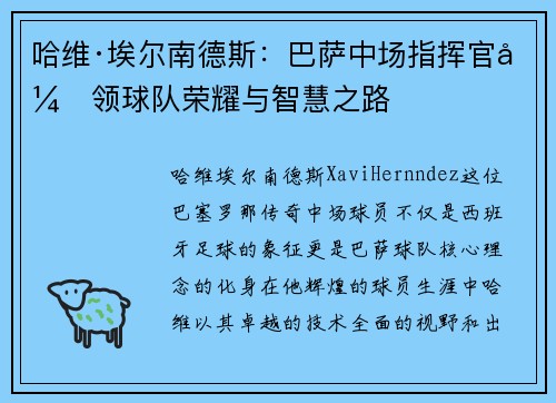 哈维·埃尔南德斯:巴萨中场指挥官引领球队荣耀与智慧之路